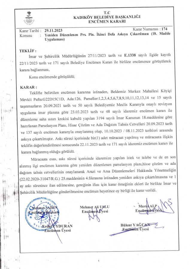 07.12.2023 - 174 - Yeniden Düzenlenen Prs. Pln. İkinci Defa Askıya Çıkarılması ve ilanı Hk. (Ada/Parseller: 126/ 1,2,3,4,S,6,7,8,9,10,11,12,13,14 ve15)