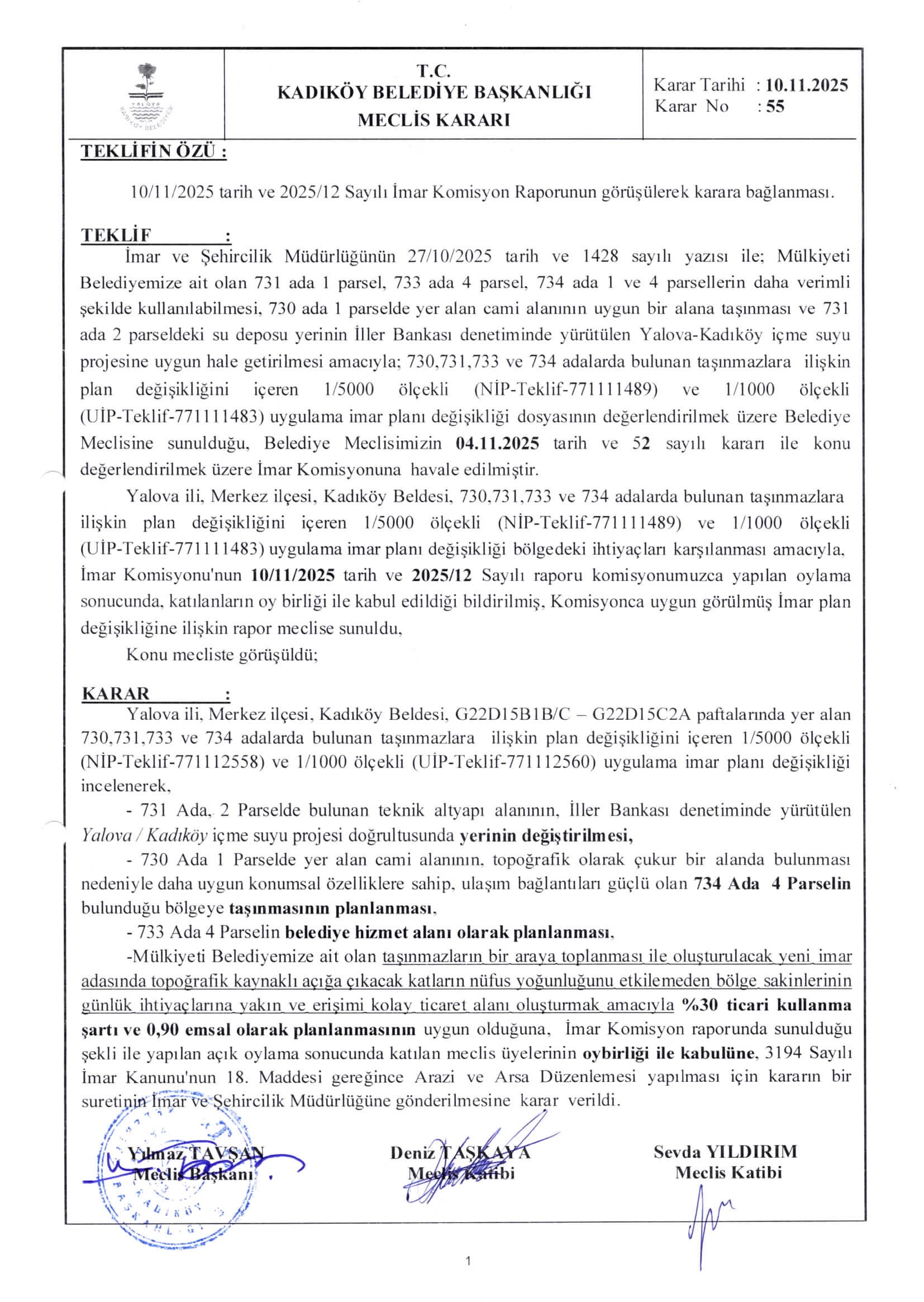 17.11.2025 -730-731-733-734 nolu Adalardaki imar plan değişikliği
