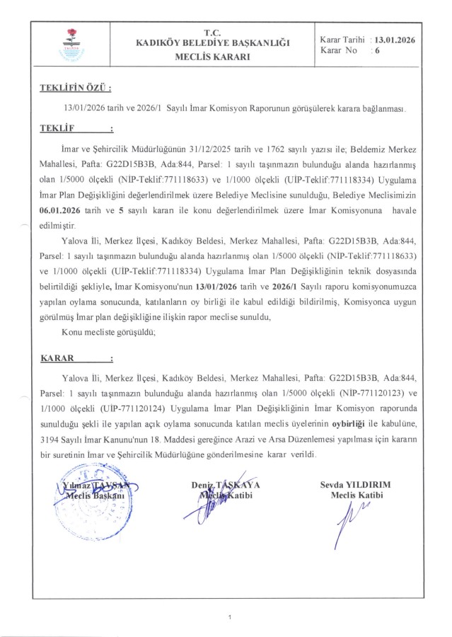 13.01.2026 tarih ve 2026/1 Sayılı İmar Komisyon Raporunun görüşülerek karara bağlanması.